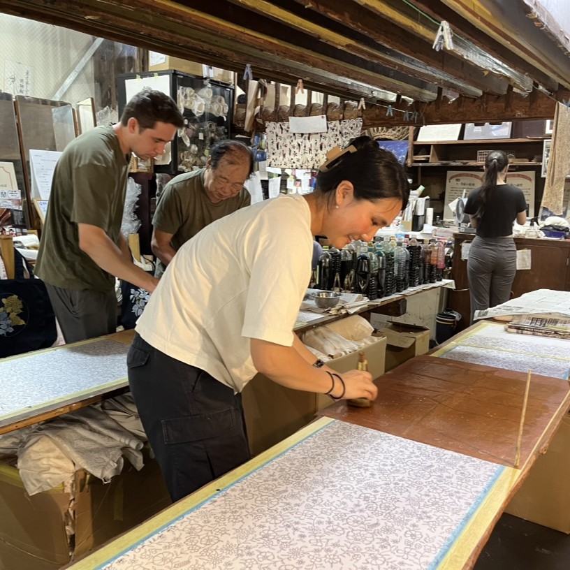 Discover the beauty of Edo Komon, a traditional dyeing technique recognized as an Important Intangible Cultural Property of Japan. This hands-on experience takes place at Tomita Somekogei, a historic dyeing studio founded in 1882.