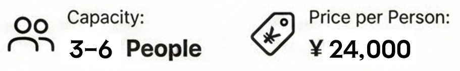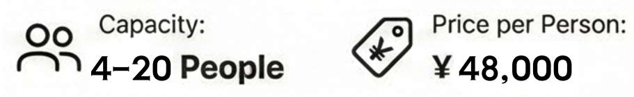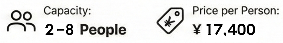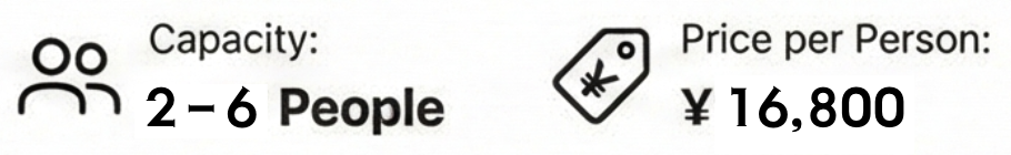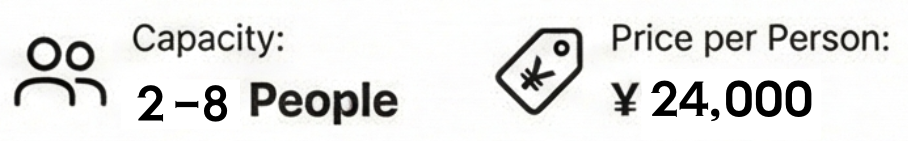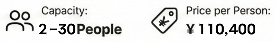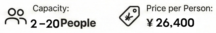 This experience is well suited for groups, couples, and families. Infants and children are also welcome. Drinks are not included, but a customary gratuity for the geisha is included in the plan.